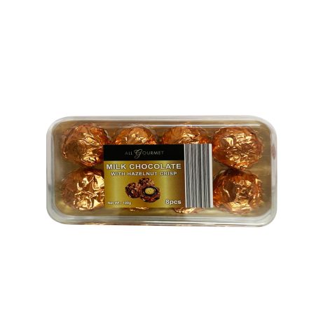 All Gourmet Milk Chocolate with Hazelnut Crisp is a rich and creamy milk chocolate bar infused with crunchy hazelnut pieces for a delightful texture. The smooth, velvety chocolate perfectly balances the nutty, caramelized crunch, creating a luxurious treat for chocolate lovers.