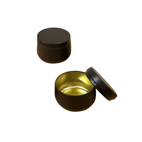 This small black tin container is a compact and stylish storage solution, featuring a sleek black finish that adds a modern touch to any space. Ideal for holding small items like tea, spices, or trinkets, this container combines practicality with a gold finish design on the inside.