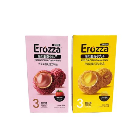 Erozza Cookie Balls Cheese/Strawberry Flavor are bite-sized, crunchy treats that combine the rich, savory taste of cheese with the sweet, fruity essence of strawberry. These delicious cookie balls offer a unique contrast of flavors, making them a satisfying and delightful snack.