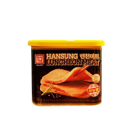 Hansung Luncheon Meat is known for its high-quality ingredients and traditional production methods. It is often used as a convenient ingredient in various Korean dishes, such as stir-fries, stews, and sandwiches. The luncheon meat is typically sliced and pan-fried or added to other dishes to enhance their flavor.
