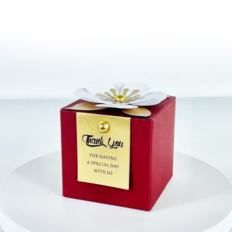 A luxury decorative red square box with a flower design that is perfect for wedding gifts or any special occasions.