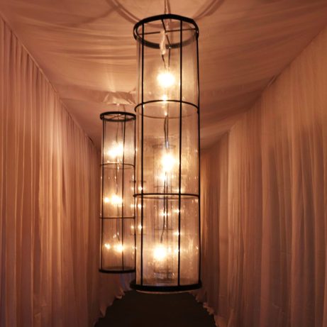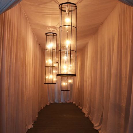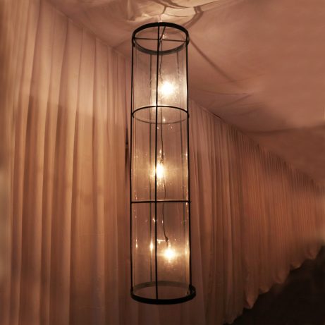 This minimal hanging cylinder lamp is perfect for both indoor and outdoor ambiance and has perfectly distributed light bulbs for perfect lighting.